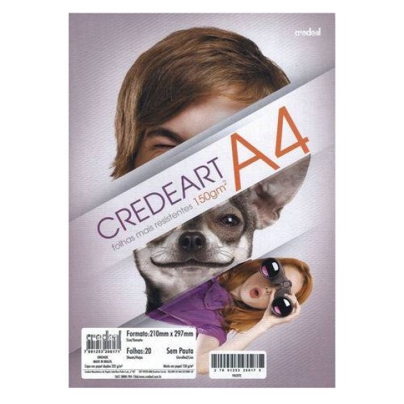 Bloco Credeart A4 com 20 folhas sem pauta para desenho (150g/m²).