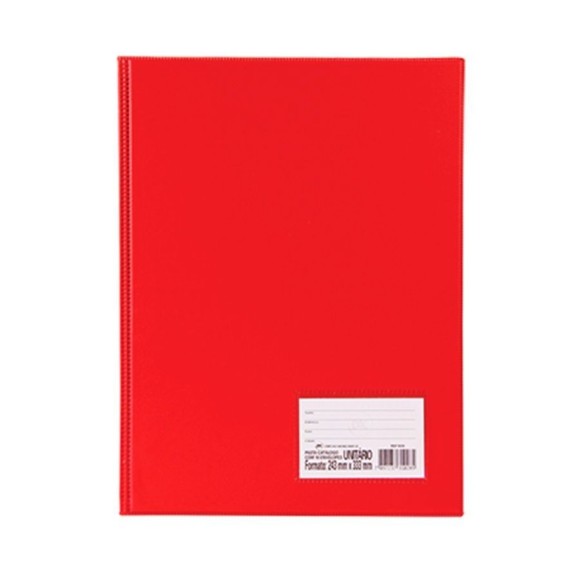 Pasta catálogo vermelha 240mm x 330mm com 10 envelopes finos e 4 colchetes.