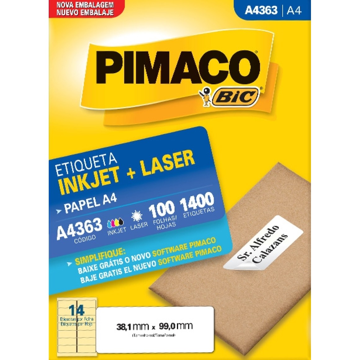 ETIQUETA A4363 - 3,81x9,9 - 1400UN - PIMACO