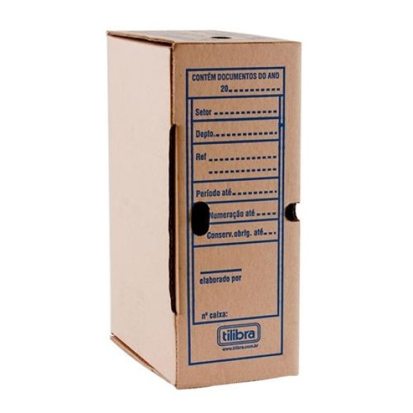 Arquivo morto de papelão ofício com puxador e maior resistência e durabilidade.