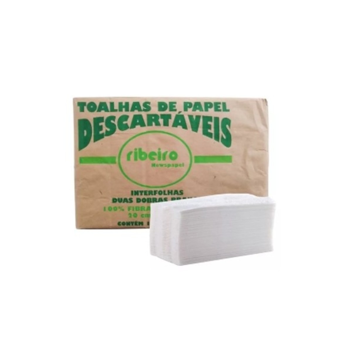 Pacote com 1.000 folhas de papel toalha branco com 2 dobras, com 20cm x 21cm cada folha.