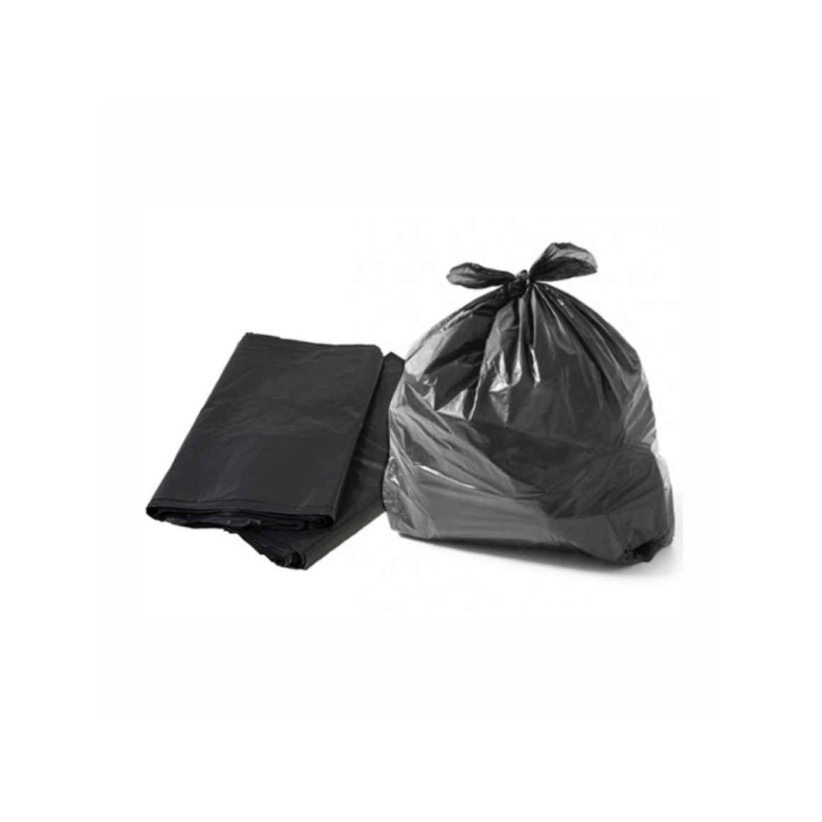 Pacote com 100 sacos de lixo de 60L na cor preta.