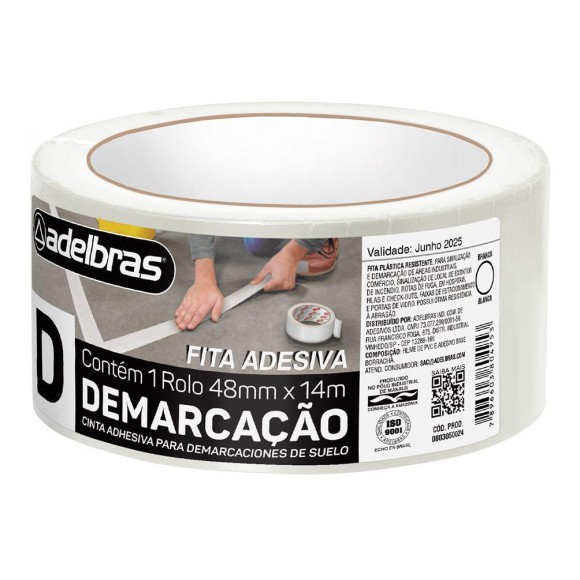 Fita para demarcação, com 48mm x 14m, na cor branca.