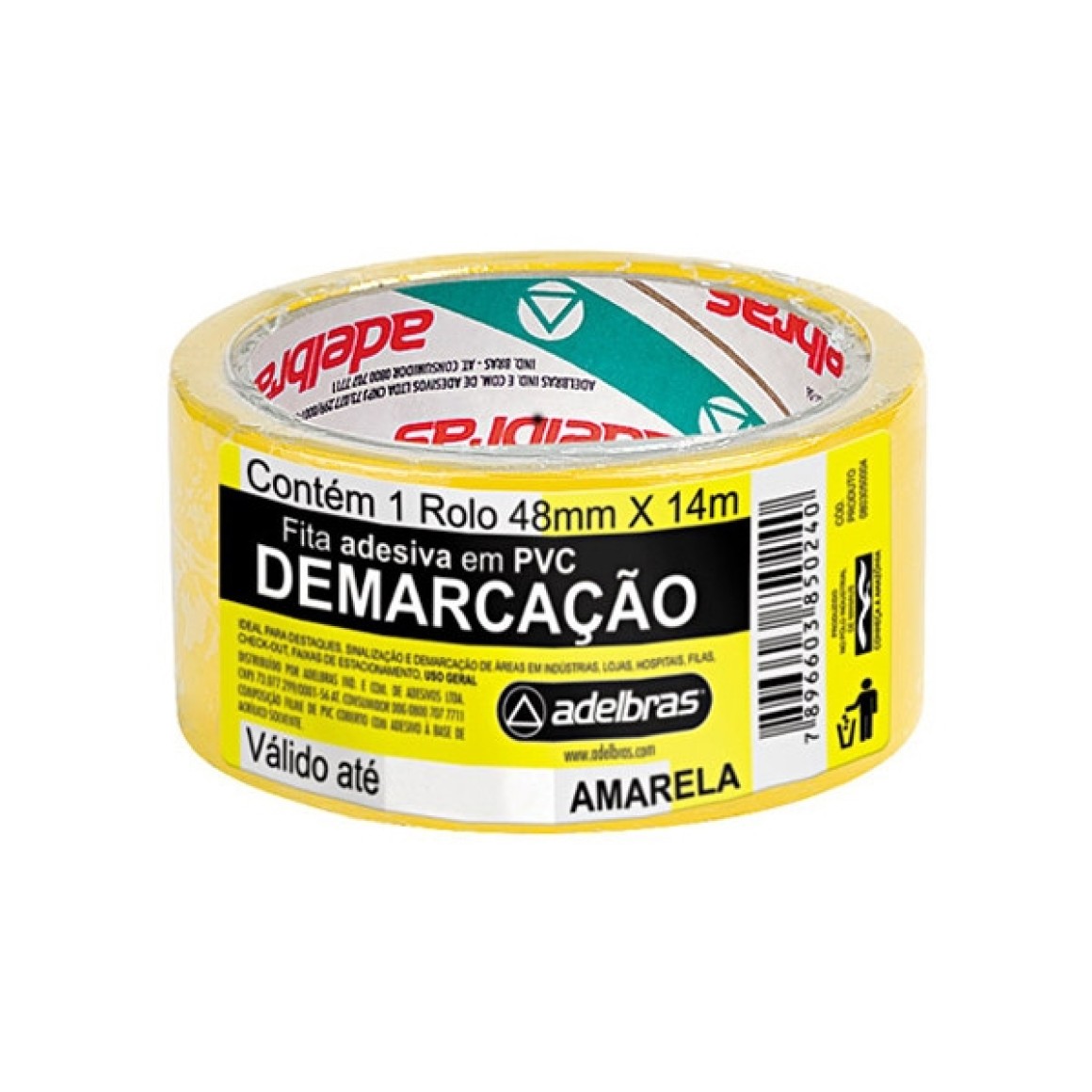 Fita para demarcação, com 48mm x 14m, na cor amarela.