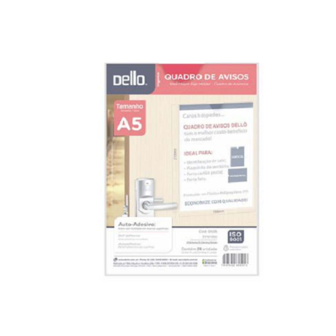 Quadro de avisos auto-adesivo tamanho A5, produzido em plástico polipropileno.