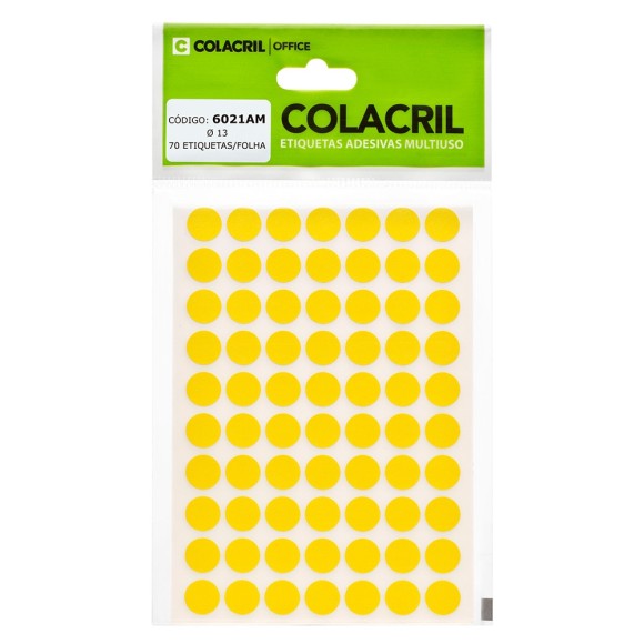 ETIQUETA REDONDA 13MM AMARELA - 420UN - COLACRIL