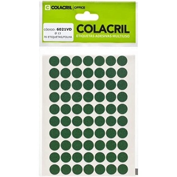 ETIQUETA REDONDA 13MM VERDE - 420UN - COLACRIL