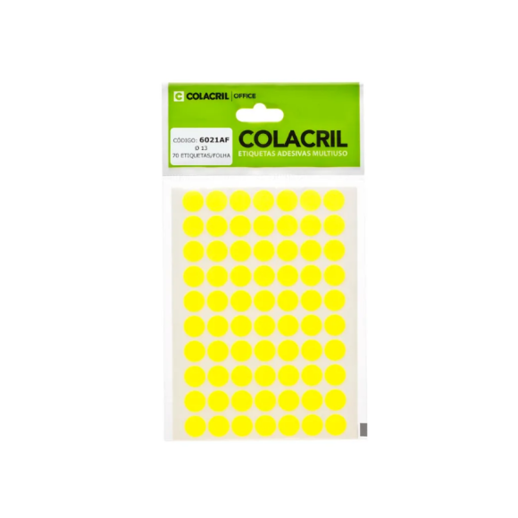 ETIQUETA REDONDA 13MM AMARELO FLUORESCENTE - 420UN - COLACRIL