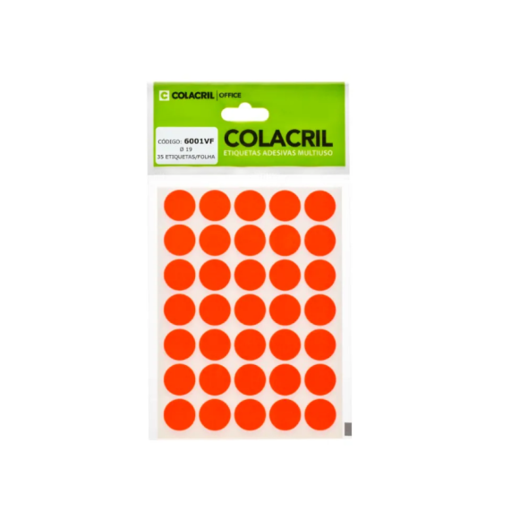 ETIQUETA REDONDA 19MM VERMELHO FLUORESCENTE - 210UN - COLACRIL