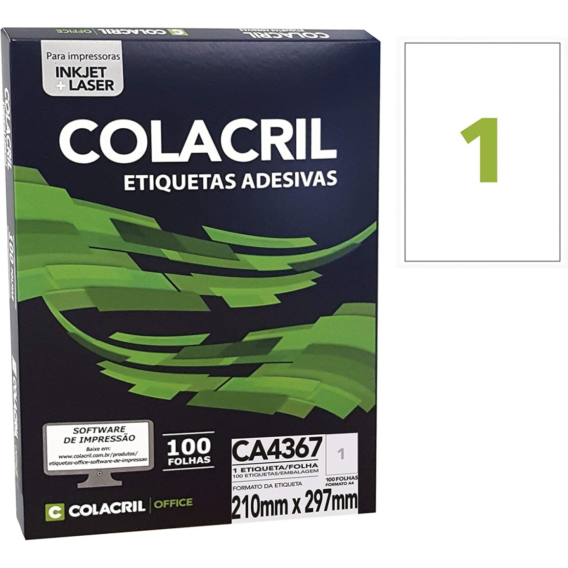 ETIQUETA ADESIVA CA4367 - 21x29,7 - 100UN - COLACRIL