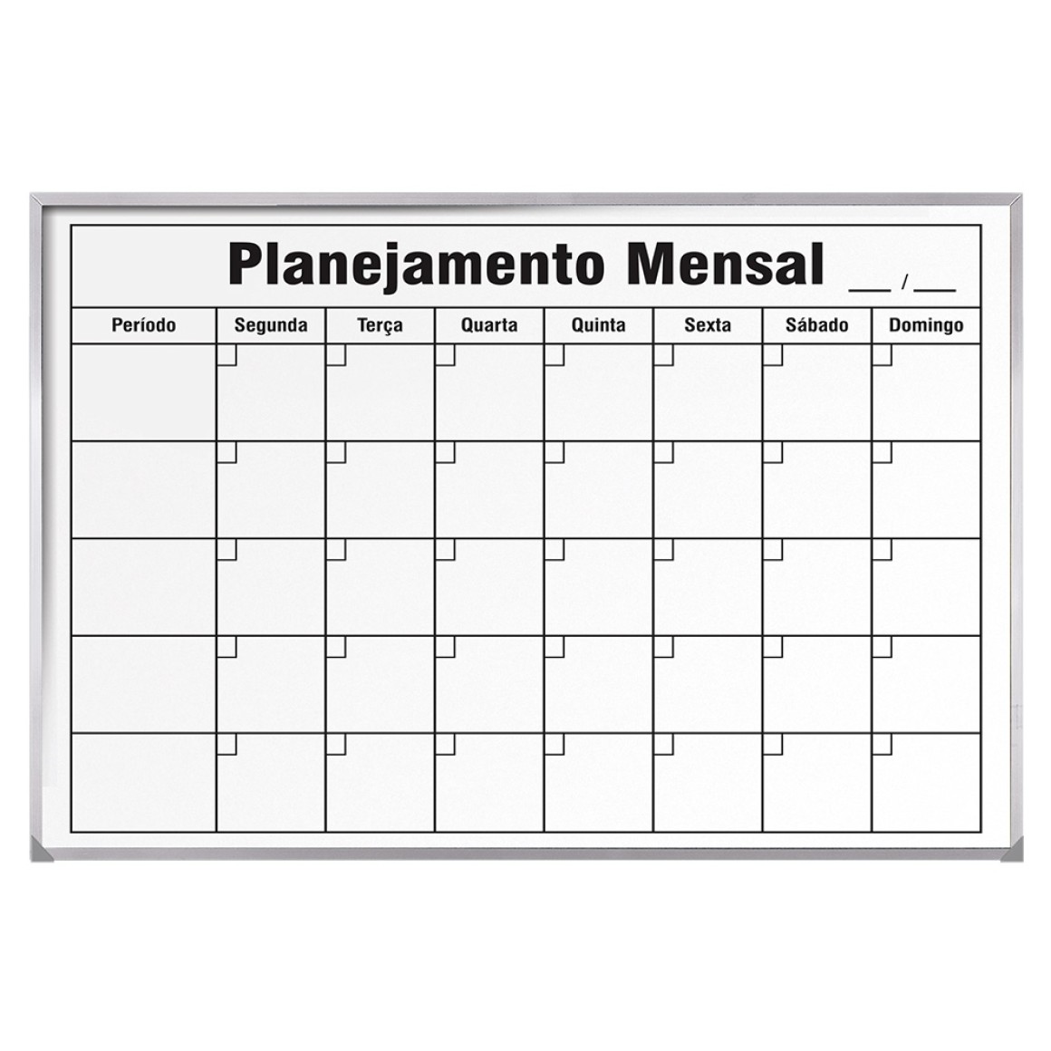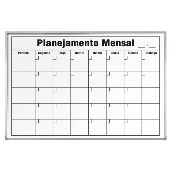 Quadro branco standart com moldura de alumínio POP de planejamento mensal com 90cm x 60cm.