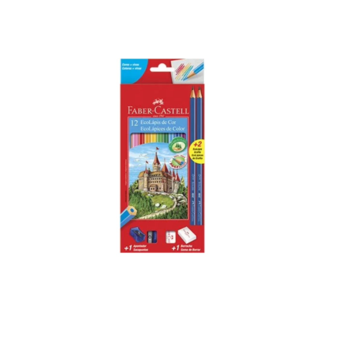 LAPIS 12 CORES ESCOLAR+APONT. E BORRACHA - FABER CASTELL