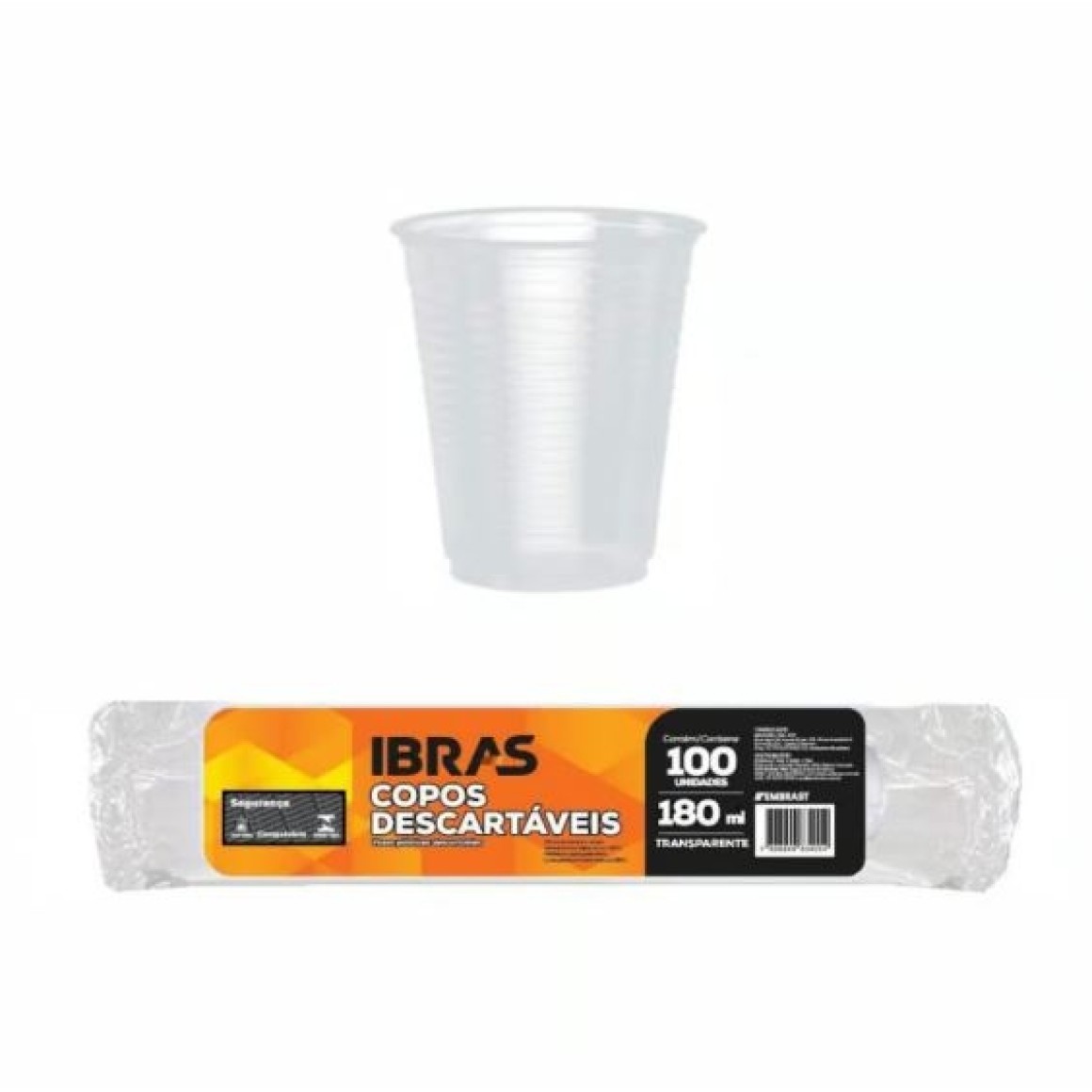 COPO DESCARTÁVEL TRANSPARENTE 180ML - 100UN - IBRAS