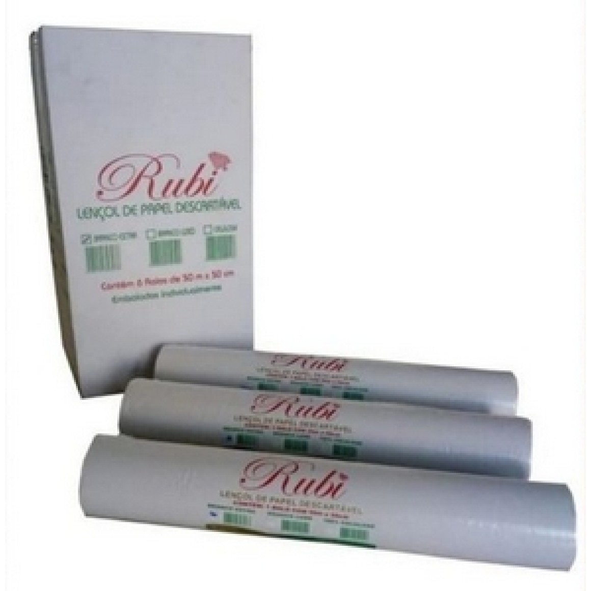 LENÇOL HOSPITALAR BRANCO EXTRA - 50CMX50M - 6 ROLOS - RUBI