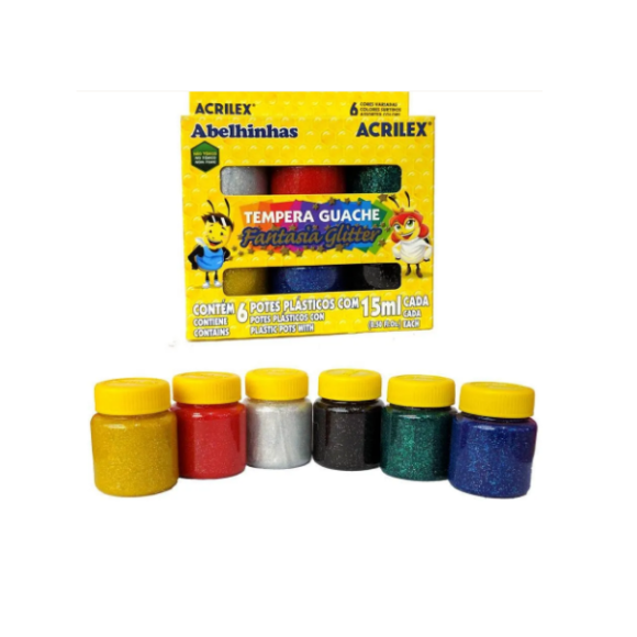 TINTA GUACHE 6 CORES GLITTER 15ML ACRILEX