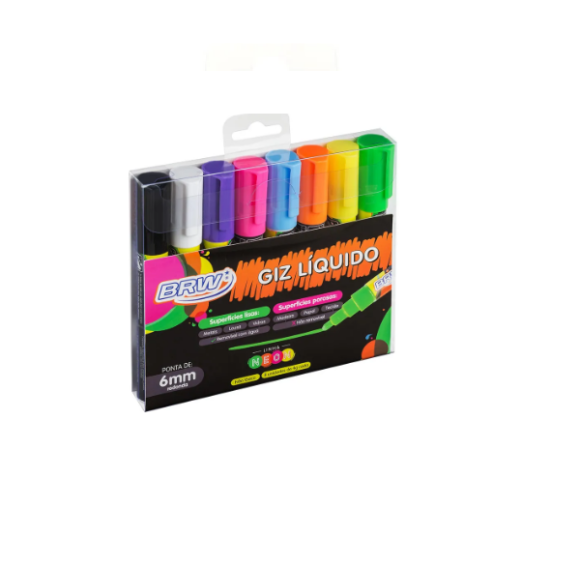 Giz Líquido 6mm 8 Unidades 4gr Cores Neon Sortidas – GZ0608