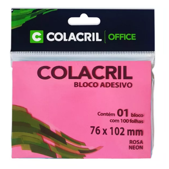 BLOCO REC.ADES.76X102 NEON ROSA 100FL COLACRIL