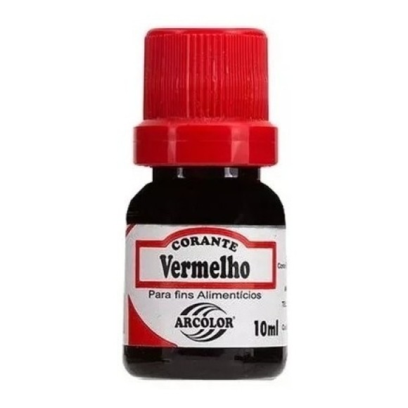 Corante líquido vermelho para fins alimentícios, com 10ml.