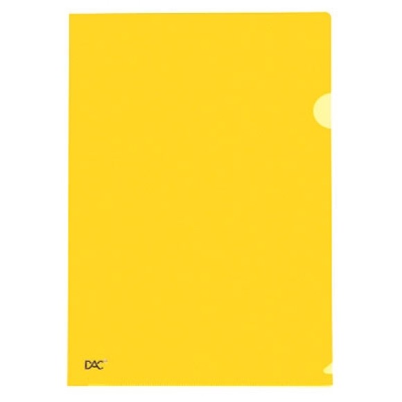 Pasta L A4 Amarelo com 220mm x 300mm. Práticas e ideais para armazenar e transportar trabalhos, propostas, relatórios, documentos e outros. Marca: Dac Ref: 042PP Peso: 0,017g