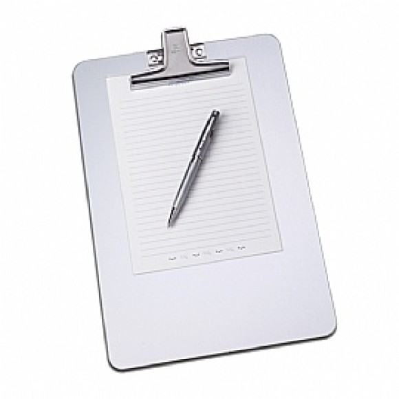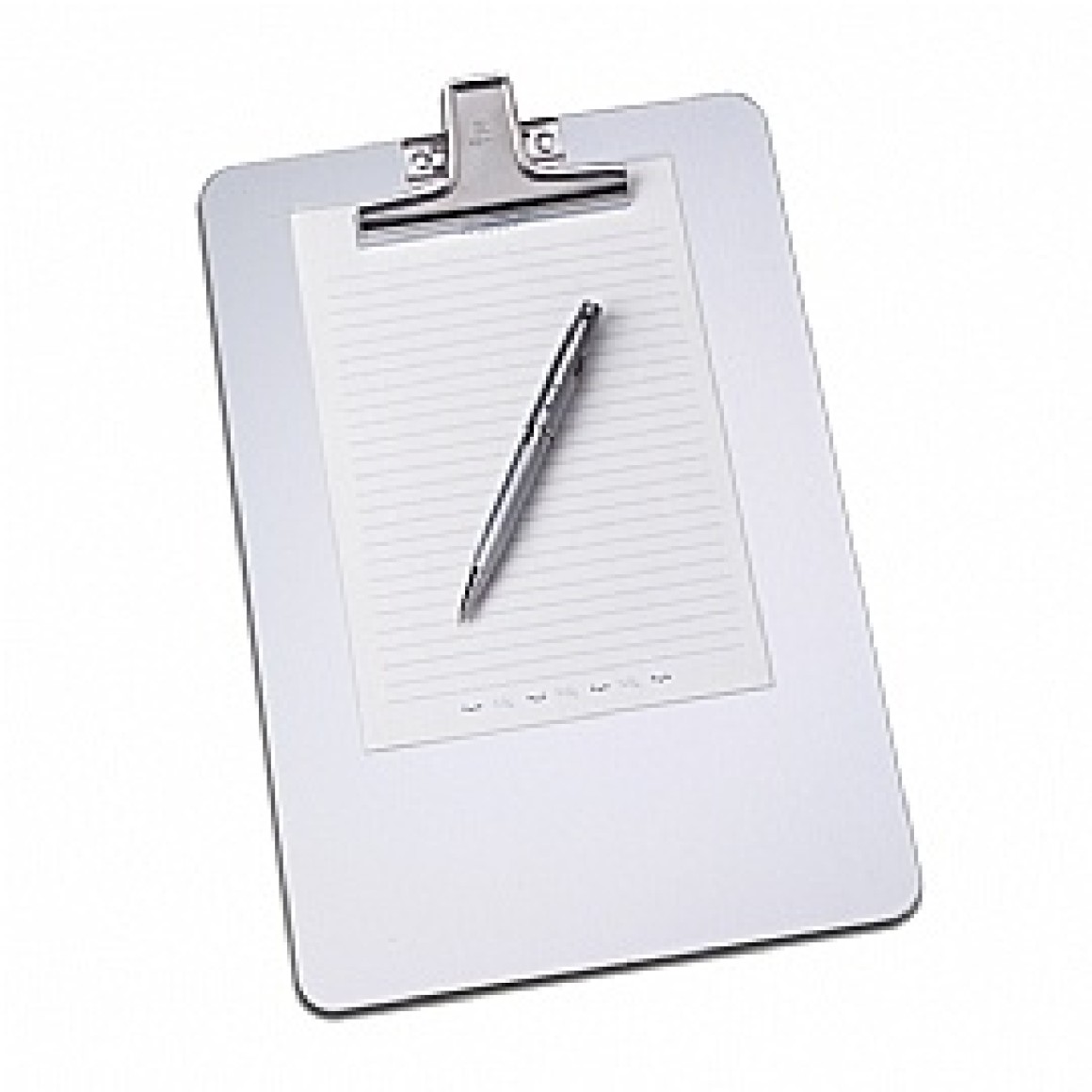 Prancheta Ofício Aço Inóx. Prendedor de alta qualidade, para segurar firmemente os papéis no lugar, com um orifício na parte de atrás para pendurar se necessário.
