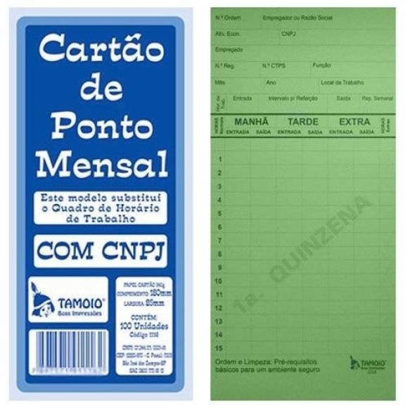 Cartão De Ponto Mensal com 100 Folhas Verde 1119.