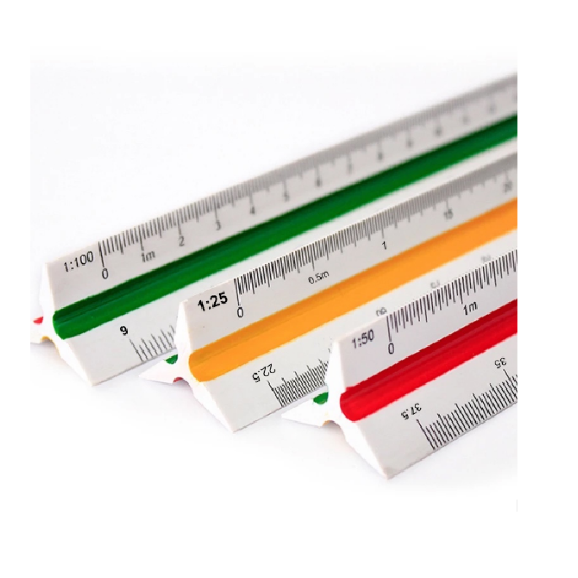 - Praticidade: Design triangular que facilita a identificação e o uso das escalas, tornando o trabalho mais eficiente