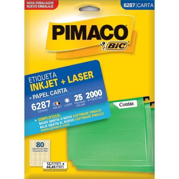 Inkjet Laser Carta 6287 12,7x44,45mm. Marca: Pimaco Tamanho do produto:12,7mm x 44,45mm Quantidade de etiquetas por folha: 80 Quantidade de folhas por envelope: 25 Folhas