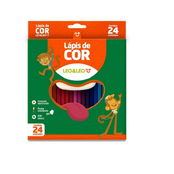 Lápis de cor de 24 cores redondo, flex da Leo&leo é perfeito para dar vida às suas criações artísticas.