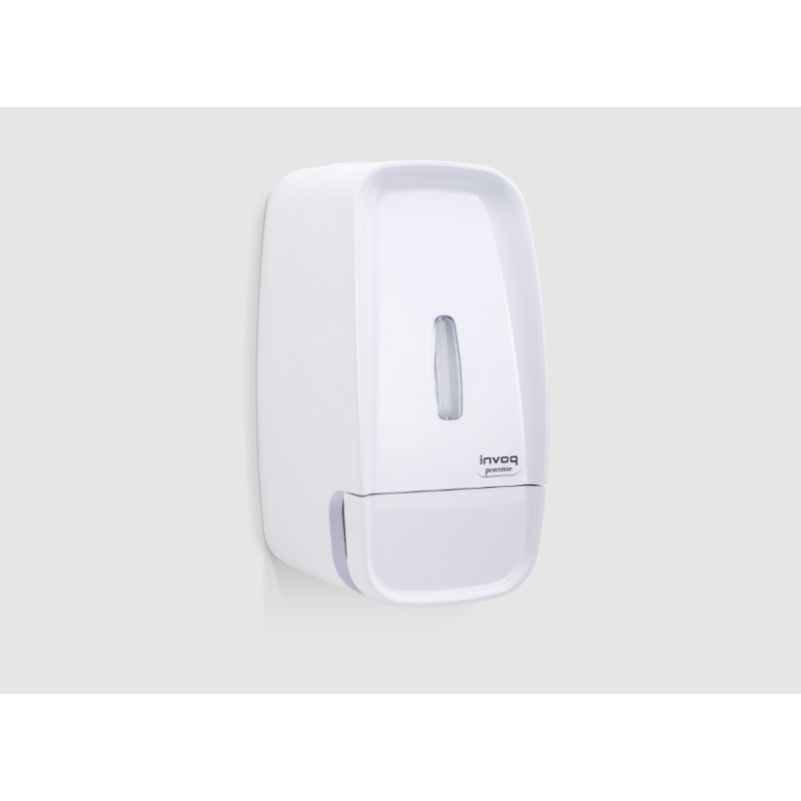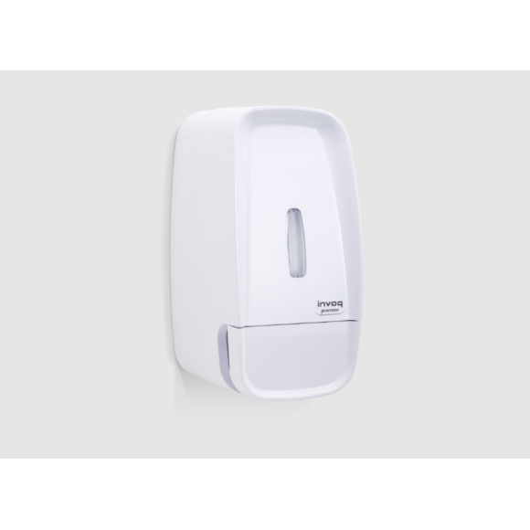 Dispenser para sabonete INVOQ Compacta, com reservatório de 600ml, na cor branca.