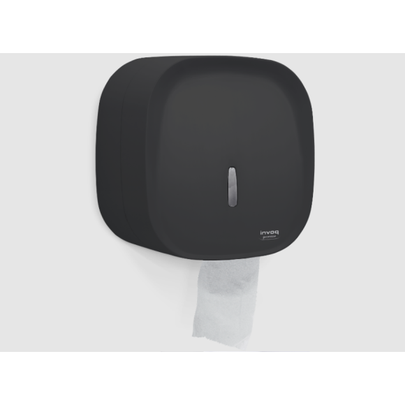 Dispenser para papel higiênico rolão INVOQ na cor preta.