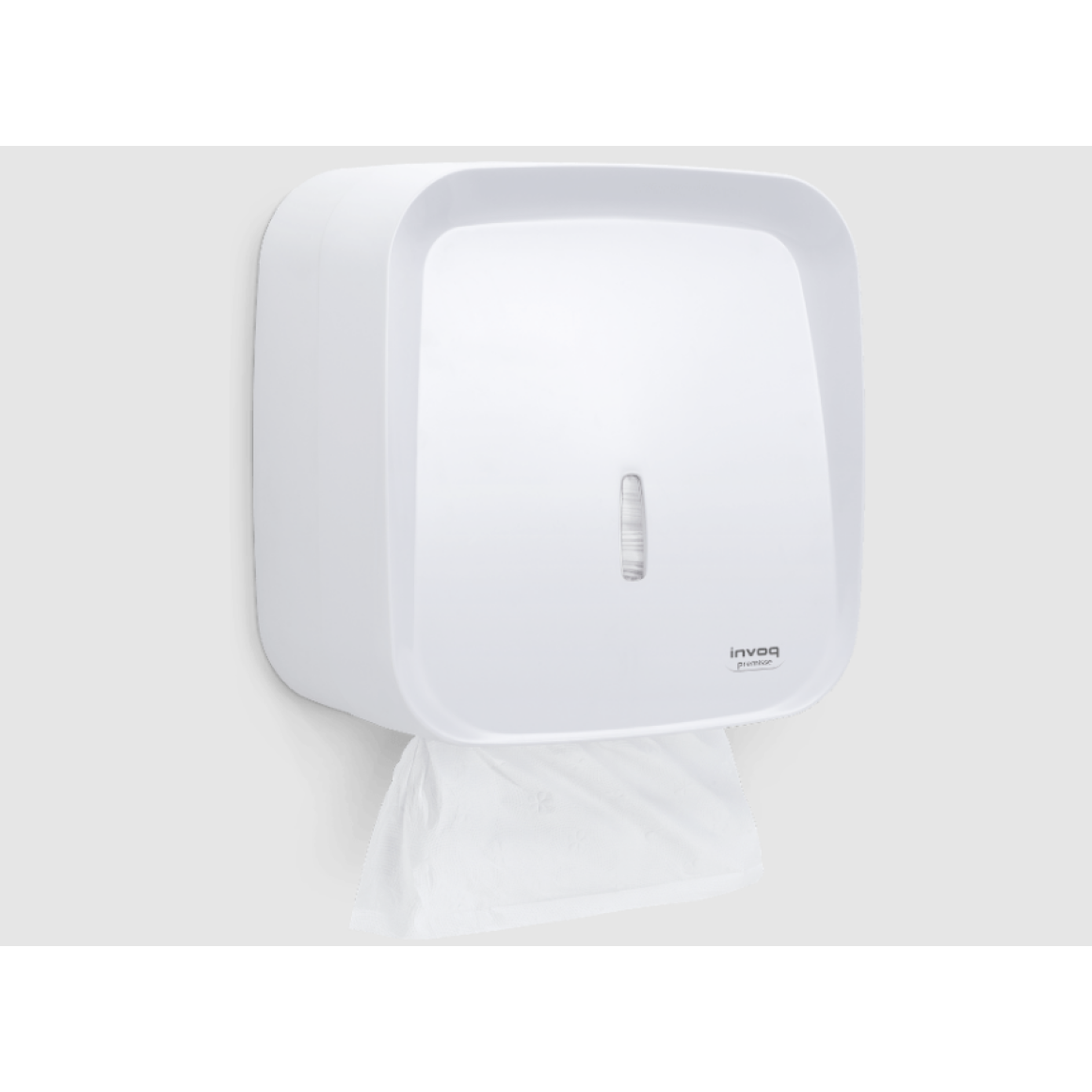 Dispenser de papel tolaha interfolhado INVOQ na cor branca.