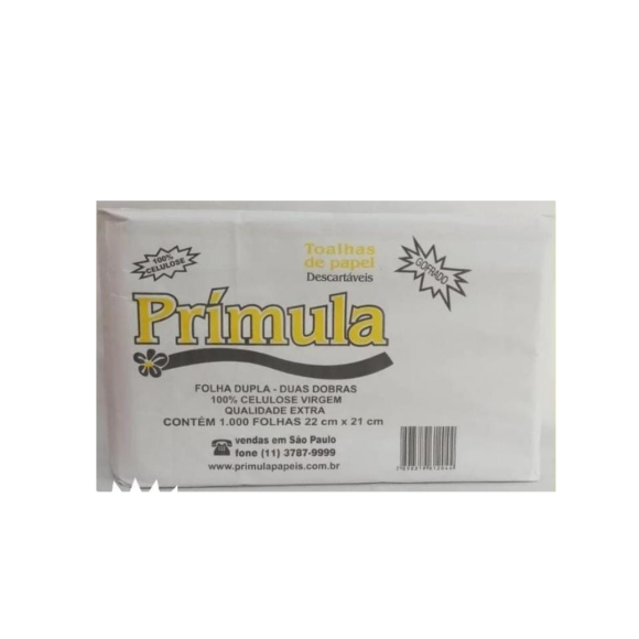 PAPEL TOALHA FOLHA DUPLA 100% CELULOSE - 1.000FLS - PRÍMULA