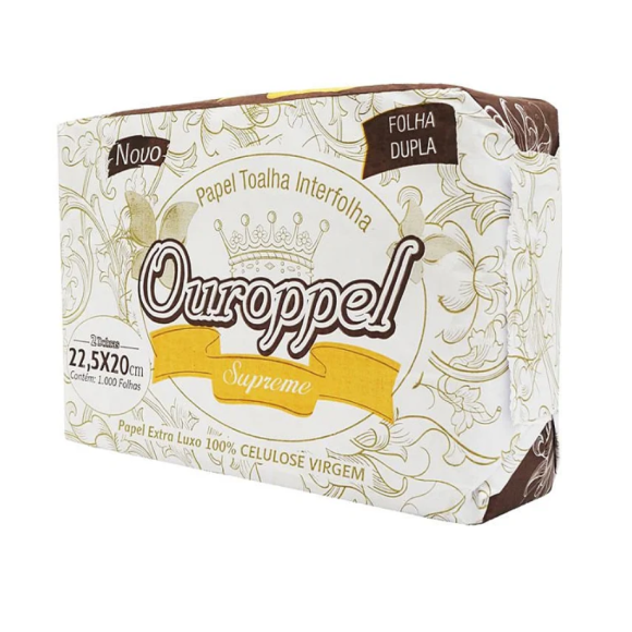 PAPEL TOALHA FOLHA DUPLA SUPREME 100% CELULOSE VIRGEM - 1.000FLS - OUROPPEL