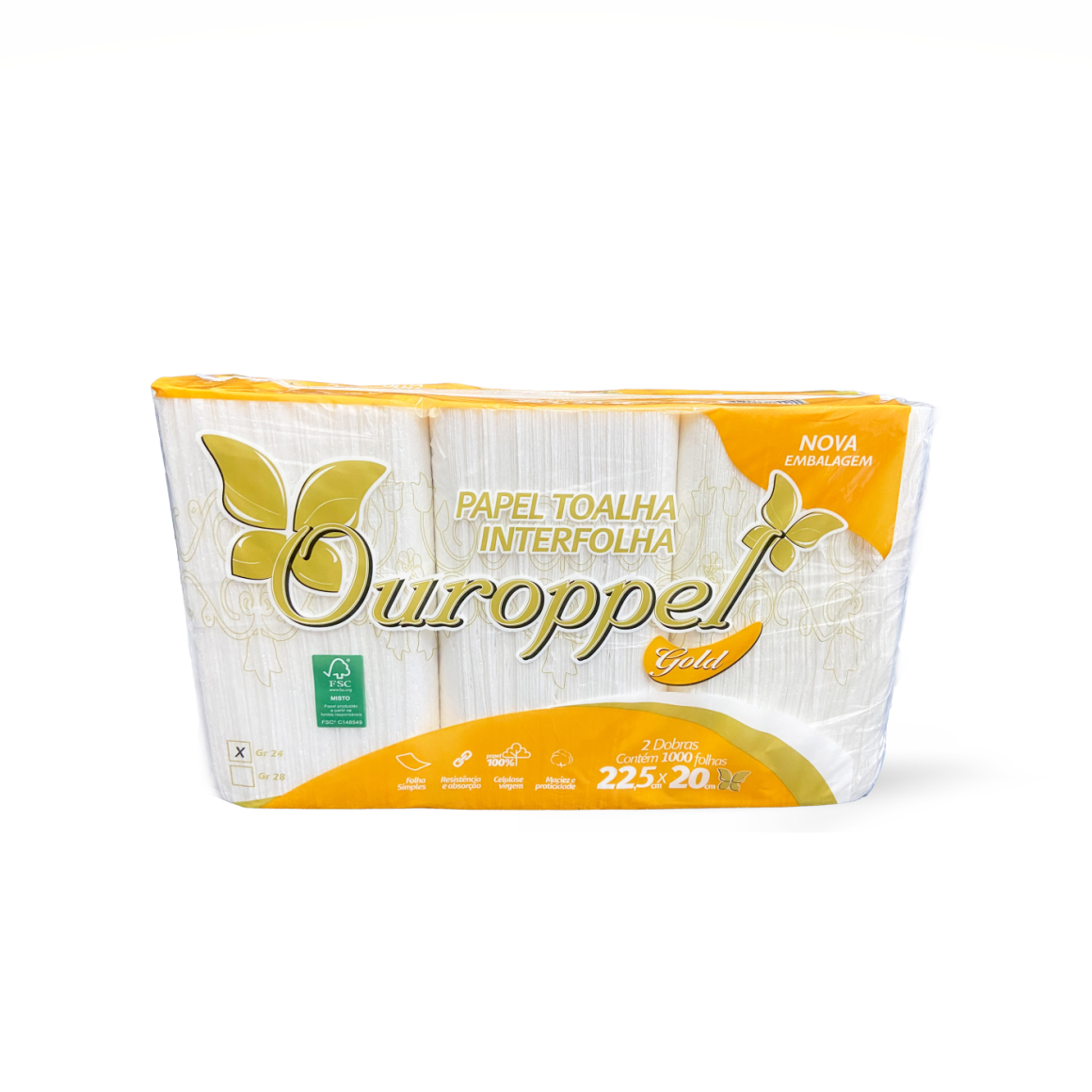 PAPEL TOALHA FOLHA SIMPLES GOLD 100% CELULOSE VIRGEM - 1.000FLS - OUROPPEL