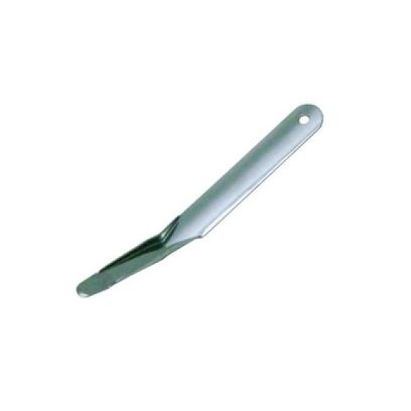 Extrator de grampos, do tipo espátula, feito de aço inox.