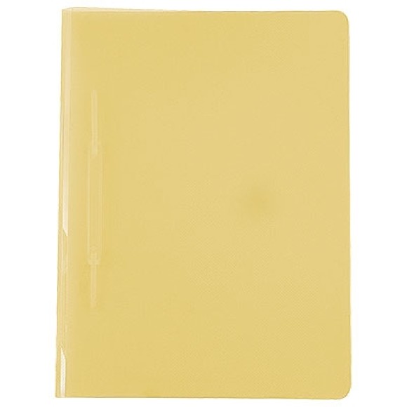 Pasta com grampo trilho plástico ofício amarela com 240mm x 340mm.