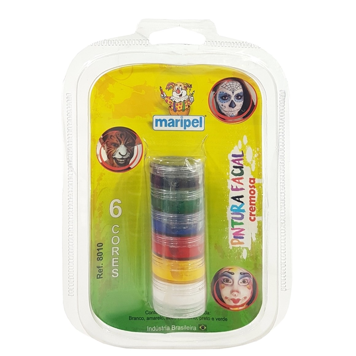 Kit com 6 potes, de 4g cada, de pintura facial cremosa.