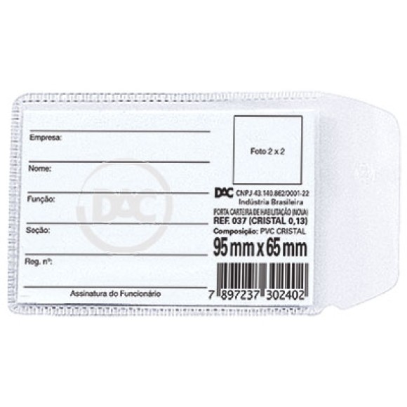 Pacote com 100 protetores, ideais para CNH, com 95mm x 65mm.
