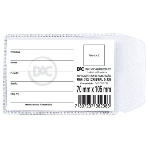 Pacote com 100 protetores, ideais para RG, com 105mm x 70mm.