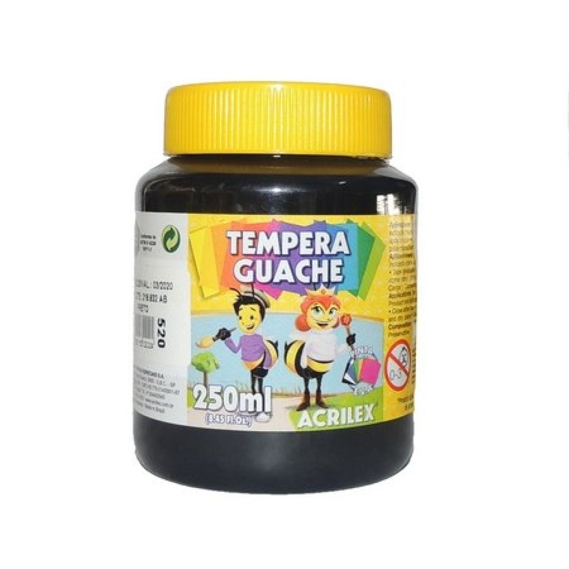 TINTA GUACHE PRETO - 250ML - ACRILEX
