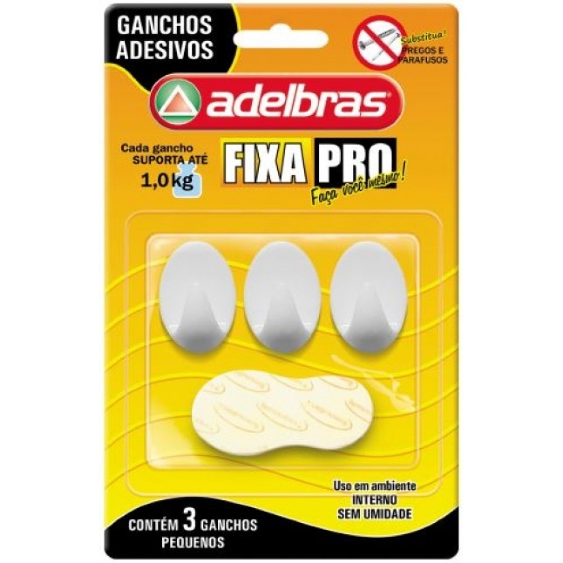 Pacote com 3 ganchos adesivos pequenos Fixa Pro.
